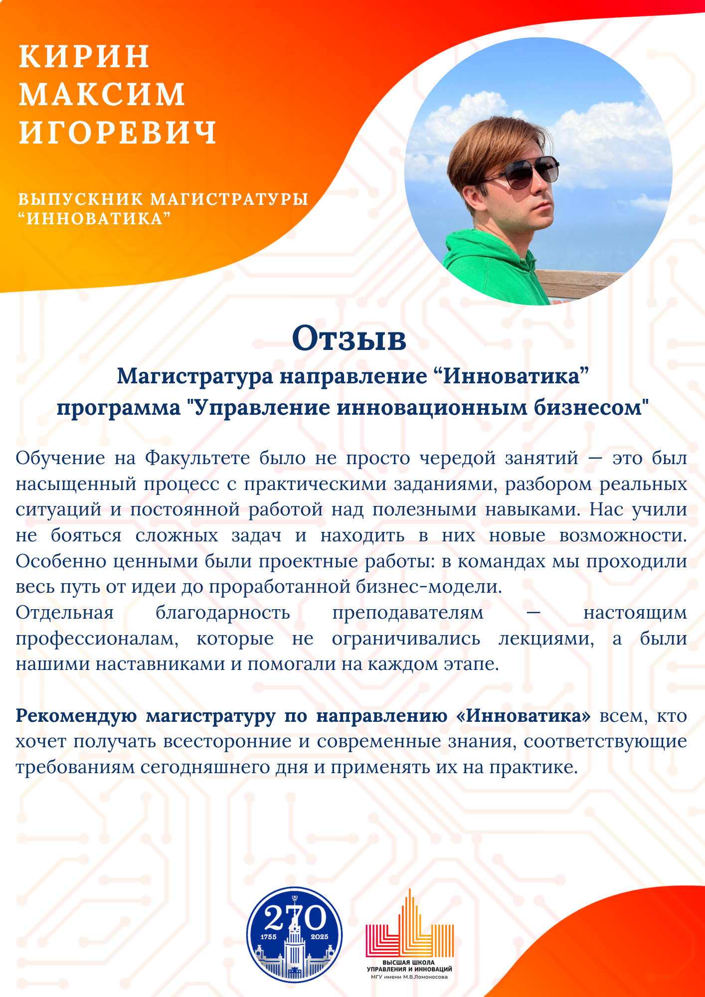 Уникальный синтез науки и практики.Преподаватели – ведущие ученые МГУ и топ-менеджеры из высокотехнологичного бизнеса. Все студенты Программы совмещают работу по специальности и обучение. Факультет оказывает помощь в трудоустройстве.