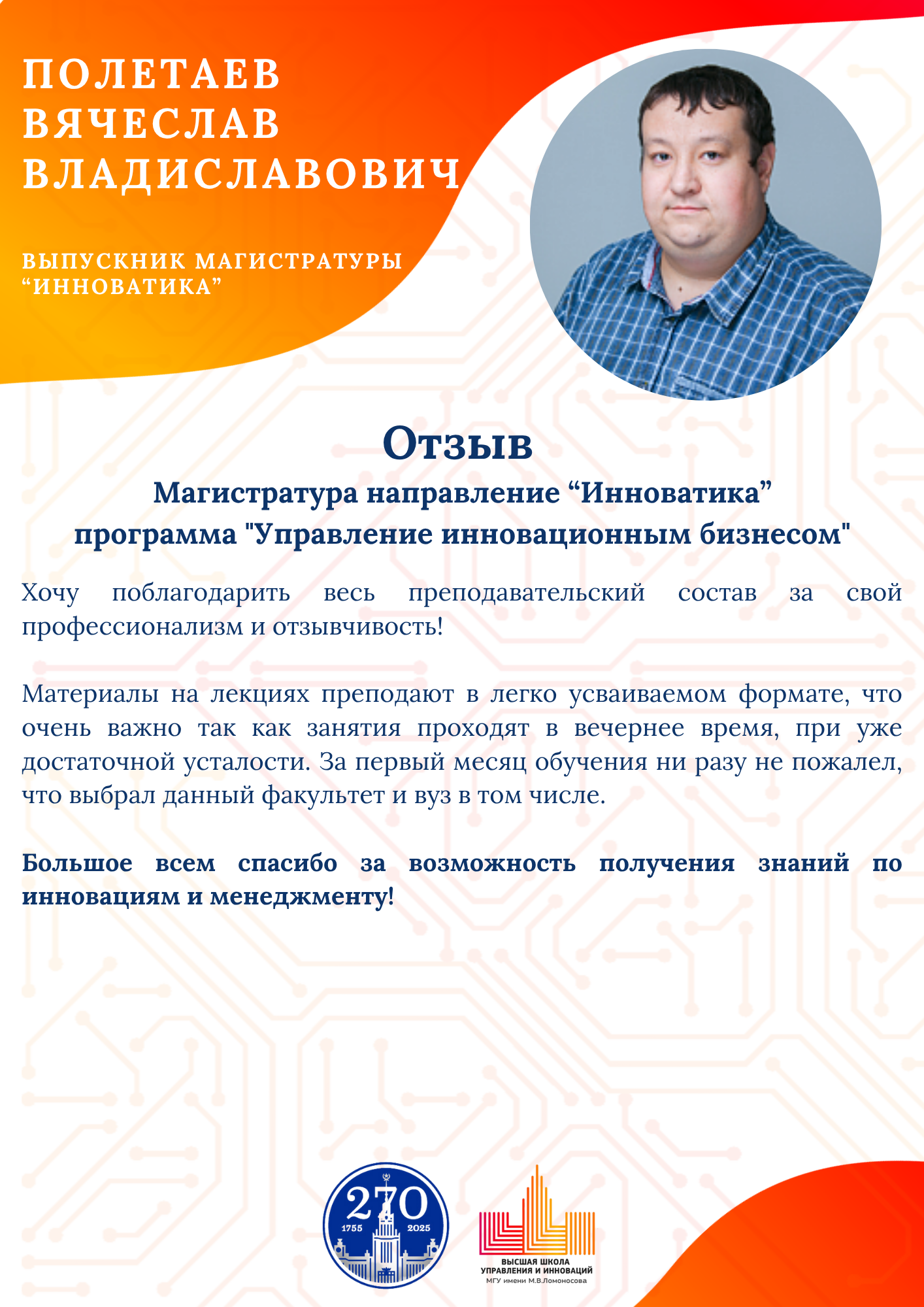 Уникальный синтез науки и практики. Преподаватели – ведущие ученые МГУ и топ-менеджеры из высокотехнологичного бизнеса. Все студенты Программы совмещают работу по специальности и обучение. Факультет оказывает помощь в трудоустройстве.