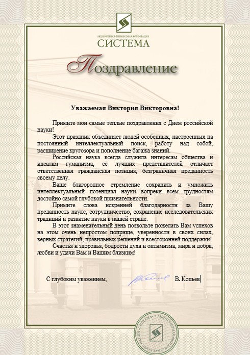 «Примите мои самые теплые поздравления с Днем российской науки!